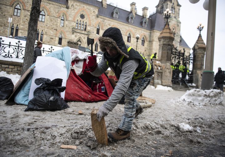 Las multitudes se han reducido considerablemente en Parliament Hill y sus alrededores, donde los manifestantes contra las restricciones de COVID han estado protestando durante días.